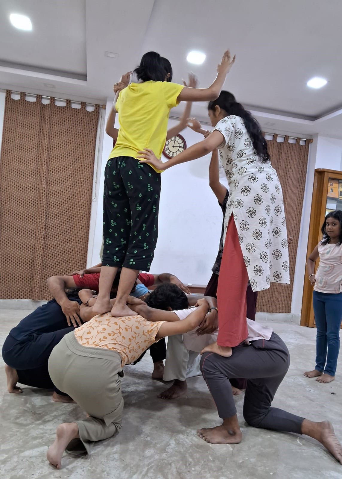 The sessions combine both theoretical and practical learning, covering the fundamentals of acting, stagecraft, set design, make-up, and the social dimensions of performance. Participants are introduced to improvisation, physical acting, body language, and voice modulation, alongside training in dance and music. These immersive experiences not only build technical skills but also foster creativity, discipline, and social awareness.